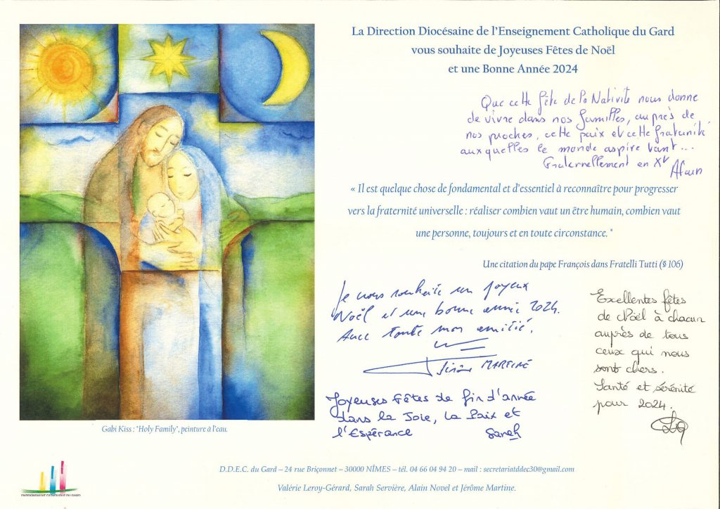 La Direction Diocésaine de l’Enseignement Catholique du Gard vous souhaite de joyeuses fêtes de Noël et une bonne année 2024.