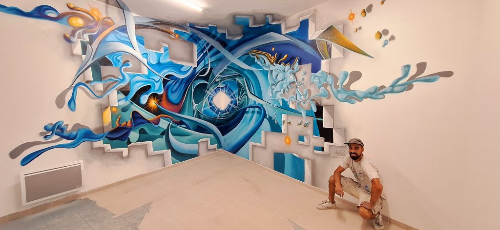 Par ailleurs, l’oratoire a été confié à un autre artiste graffeur, celui-ci Nîmois, Brandon Kin qui a décoré deux murs pour donner de la couleur et de la profondeur à cet espace de recueillement.
