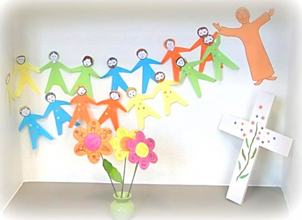 La première donne les indications pour fabriquer une farandole des saints. Elle nous permet d’appuyer davantage sur le fait que, tous enfants de Dieu, nous sommes reliés aux saints et nous marchons ensemble à la suite du Christ à la rencontre du Seigneur. La communion des saints est représentée par ce lien de filiation. Le pdf, issu du site du service de catéchèse du diocèse de lyon est disponible ici : https://www.ecgard.fr/wpec/wp-content/uploads/2024/09/A_la_Toussaint_des_bricolages.pdf