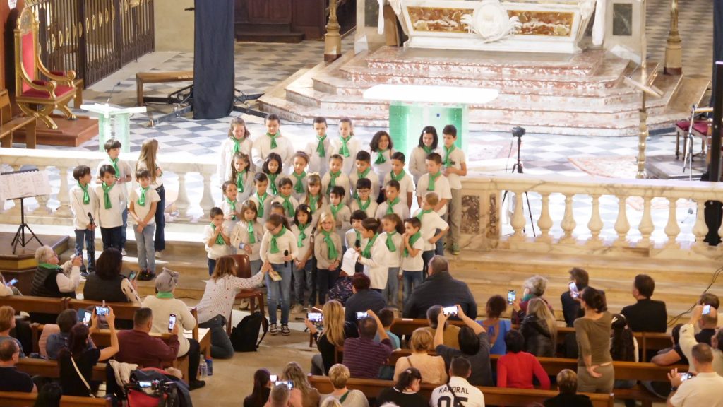 La journée s’est terminée par un concert magnifique des chorales d’élèves des écoles Taisson et Notre Dame d’Alès ainsi que de l’école Saint Pierre de La Grand Combe, apportant une touche finale très joyeuse à notre rencontre. Nous sommes repartis ressourcés, à la veille des vacances de la Toussaint, portés par les encouragements de Monsieur Martine et de Monseigneur Brouwet.
